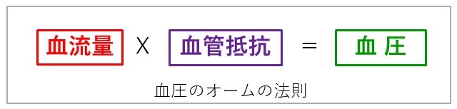 血圧は、血流量と血管抵抗の積(カケ算)で決まると言っています。つまり下図のようになっています。