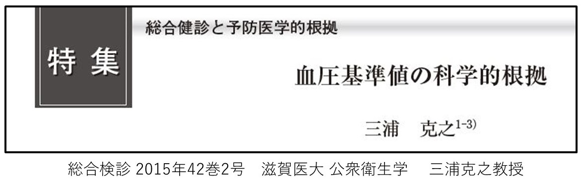 10年前に「現在の血圧基準値は低すぎる」と人間ドック学会が言い出しました。それに対する反論を、滋賀医大の三浦教授が「日本高血圧学会を代表して」とコメントしながら、次の論文を発表しました。