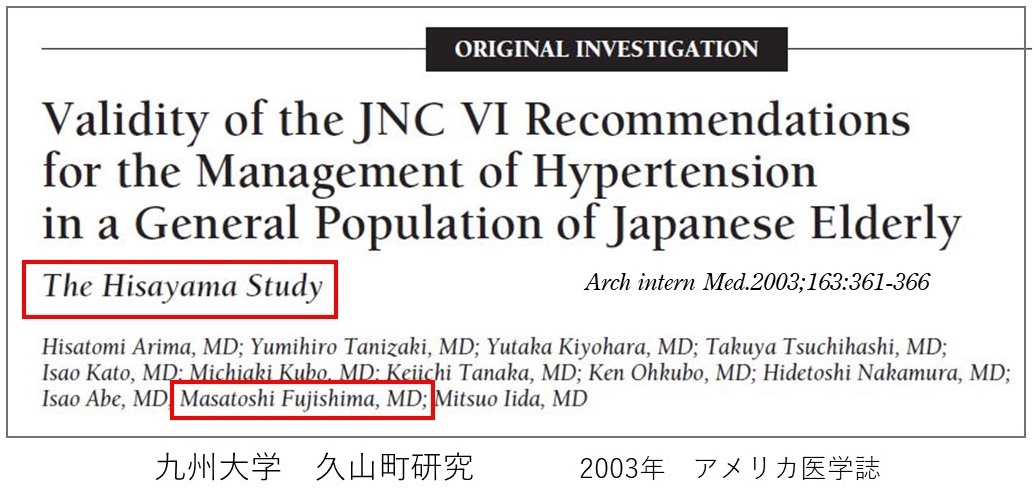 実は、この論文の執筆者で、2000年に血圧基準値を20mmHg引き下げた委員会の座長だった九州大学内科の藤島正敏名誉教授は、2003年の厚労省主催の集会で「血圧の新基準値にはまだ証拠がない、調査が必要だ」と証言しています。そしてその2年後の2005年に68才で心筋梗塞で亡くなりました。心筋梗塞を予防するために血圧基準を厳しくした当人が、その心筋梗塞で亡くなったわけです。その後20年以上経ちますが、日本ではまともな調査はなされていません。