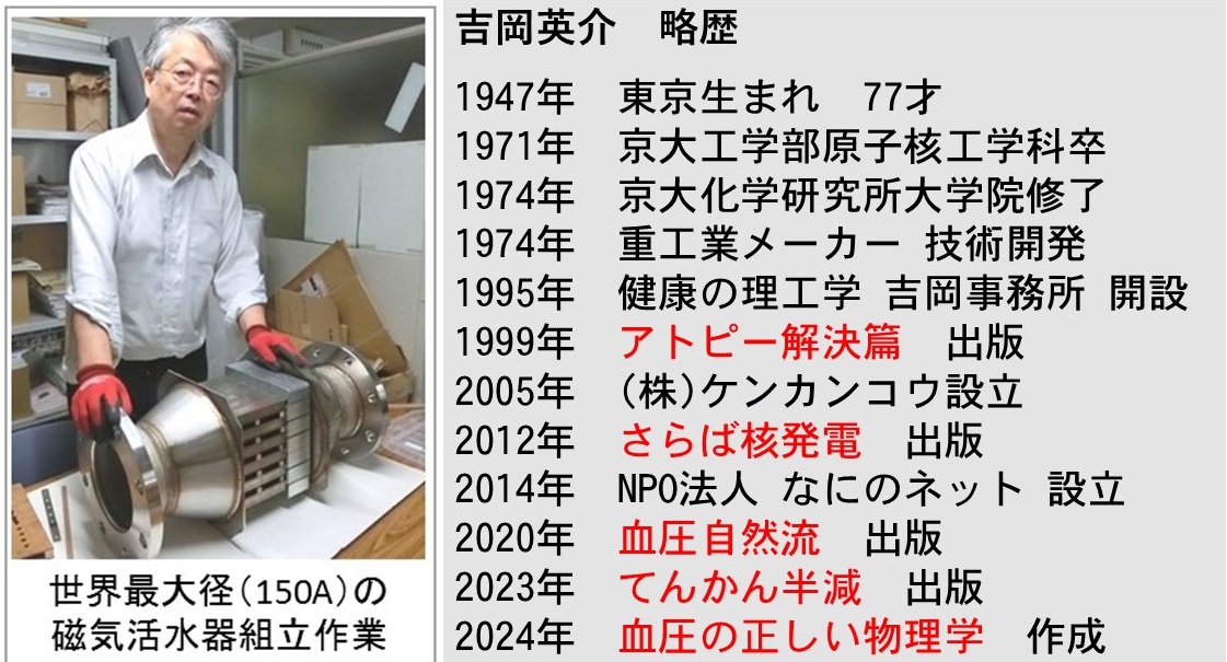 魚の摂取を増やし牛豚鶏を減らし、日常的に磁気活水を飲用し、「血圧の正しい物理学」を知れば、脳梗塞の1年内再発率は半減するでしょう。脳梗塞の再発を防ぎたいと真剣に考えている方々の参加をお待ちいたします。
