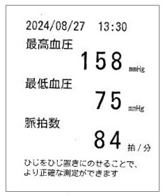 ちなみに筆者は2年ほど前の76才時に、たまたま血圧を測ったことがあります。すると下図のような判定書がスルスルと出てきました。