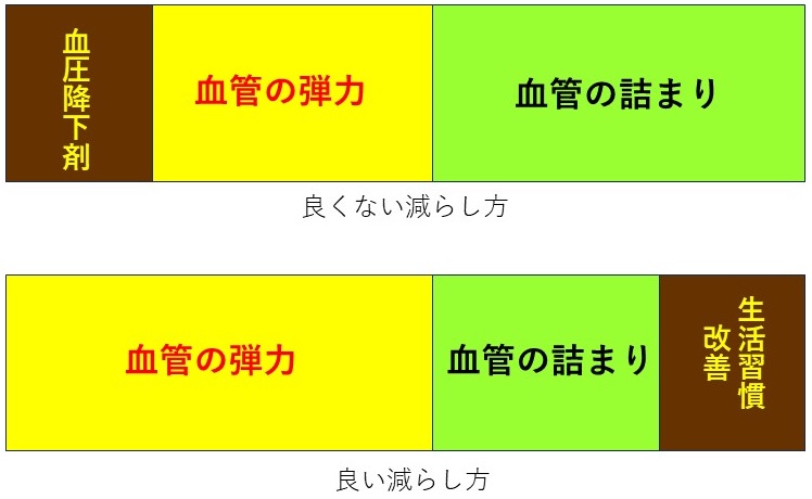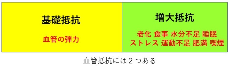 血管抵抗減らすためにプラークなどの詰まりを除去して、増大分を減らすのはよいことですが、血管の弾力を失わせてはいけません。血管の弾力は血管の基礎抵抗であり、それは子供や若者にもあって、重力に抗して血液を循環させるための必須の力なのです。